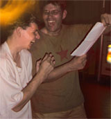 | | Signing a contract with a bar is signing your soul to Satan. See how happy these two are when they 'collect'? | There are two things that you should bear in mind every time you are looking a spot for your show/club night: it should be two blocks or less from where you live (no matter where you live) and it should be quasi-legal (to add more street cred to your name.) You can usually saunter into just about any local bar and book a night pretty easily. Be wary though if they want you to draw up and/or sign a contact - these guys are what we call hustlers and typically try to sneak in something like rental fees or loading times at the last minute.