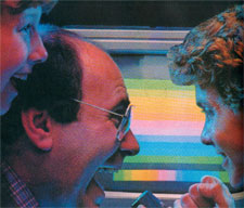| | Winners don't get this excited by color bars. | It's in the expose of personalities and insight where Gameheadz excels - they allot 15 minutes alone to the story of Henk Rogers trying to gain the console rights for Tetris from Alexey Pazhitnov, much to the dismay of Robert Stein. Couple that with some great footage of old game commercials that include cross-dressing Link, classic cold era family archetypes engrossed in Space Invaders, photographs and ancient video footage from behind the scenes (including a racy hot tub scene!) and you have a documentary that doesn't mock gamers, but explores the mind of these pioneering men and weaves it all together in an intriguing and engrossing manner.