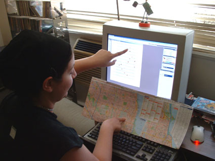 peccaui: She takes a look at the list and maps each carefully selected point out by using a pre-fab map she created and works out a path of direction. You might want to note that we do not own cars, as allowing either of us behind a wheel in Chicago would inevitably lead to several traffic violations and a higher-than-average obituary count in the Sunday newspaper.