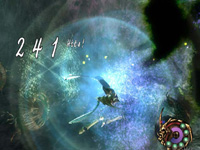 | | Nothing says sexy like a triple digit combo. Eat your heart out Killer Instinct. | So in the end Raikoh never really gains the means to combat the deadly, life sucking water and since this isn't a Squaresoft game he never manages to grow wings. It's all good though, he does have a few other tricks up his sleeve. Scattered around basically every level is some sort of talisman, or weapon, or magic spell. You certainly don't need all of these. I went through the whole game using about four weapons total and ONE spell...but they're sure as hell fun to collect since getting most of them involves bashing stuff up (and it added about six or seven hours to my play time without feeling like I was doing the same mindless dribble over and over). Tell the truth, you know your heart sings with joy when you get that hundredth little trinket to round out your inventory. Mine certainly does, and Otogi manages to appease the collector in me without forcing me to dig up six hundred little "packages" or some other equally inane task. While the weapons and items aren't so unique as say, the ultraspecialized weapons of Devil May Cry, many of them do manage to have their own charm. The staff that makes you jump higher is a personal favorite of mine and who can aruge with an undead warrior wielding two scimitars at a time?