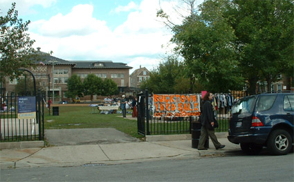 peccaui: The next sale was labelled as the biggest sale in Bucktown. Then again, we hear that claim every week and the end result is four items and a litter box for sale. But, as evidenced by the picture, I was more interested in the pub up the road than a bunch of homemade jewelery-peddling housewives huddled underneath a makeshift tent.