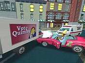 Unlike GTA, Springfield is not one big map. You're given piece of Springfield for each level and each piece is a virtual Moebius loop, so exploration is a limited within each level. While that's a disappointment, it doesn't break the bank. What does ruin the experience is the mind-numbing monotony of the game between cut-scenes. Except for a few exceptions, there are three different types of missions: Ones where you race against the clock to get to an objective, those where you have to destroy your opponent before time runs out, and those requiring you to collect objects before time runs out. Sound monotonous? It is. Halfway through you'll be cursing and praying for just even a little variation. By the final level you'll be screaming 'BUT I JUST DID THIS EXACT SAME MISSION!!' while smashing your head against a wall in an attempt to blackout the previous levels and start anew. It would help if the difficulty of the levels were evenly paced but no. They range from baby-easy to teeth-gnashingly difficult - there is little of a medium ground. There are hints after you lose to 'assist' you in reigning over Springfield but after the second level you quickly realize that they're the same three hints recycled. Apparently the developers didn't think we'd notice the hint 'Switch to a faster car!' doesn't work on a mission where you must retain the car you start with.